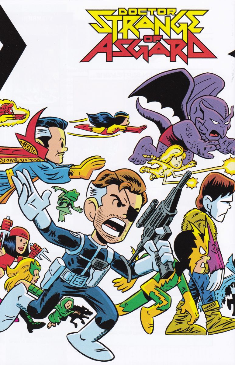 - En la contraportada se incluye la parte derecha de una cubierta alternativa de Doctor Strange of Asgard vol.1 #2 de Chris Giarrusso. Las contraportadas de El Inmortal Thor vol.1 #164, El Increíble Hulk vol.2 #153, Daredevil vol.1 #67, Ultimate Spider-Man vol.1 #16, Ultimate X-Men vol.3 #5, Los 4 Fantásticos vol.7 #181, Un mundo bajo Muerte vol.1 #4, Un mundo bajo Muerte: Academia Muerte, El Asombroso Spiderman vol.1 #252, Miles Morales: Spider-Man vol.1 #70, Patrulla-X vol.5 #95, La Imposible Patrulla-X vol.1 #168, Excepcional Patrulla-X vol.1 #9, Lobezno vol.5 #165, Masacre/Lobezno vol.1 #1, Tormenta vol.1 #2, Patrulla-X Especial vol.1 #5, Los Vengadores vol.4 #179, Los 4 Fantásticos vol.7 #180, Un mundo bajo Muerte vol.1 #3, El Asombroso Spiderman vol.1 #251, Eddie Brock: Matanza vol.1 #1, Los Espectaculares Spider-Men vol.1 #5, Patrulla-X vol.5 #94, La Imposible Patrulla-X vol.1 #167, Excepcional Patrulla-X vol.1 #8, Lobezno vol.5 #164, Masacre vol.3 #69, Los Vengadores vol.4 #178 y Vengadores Costa Oeste vol.1 #7 forman una ilustración.