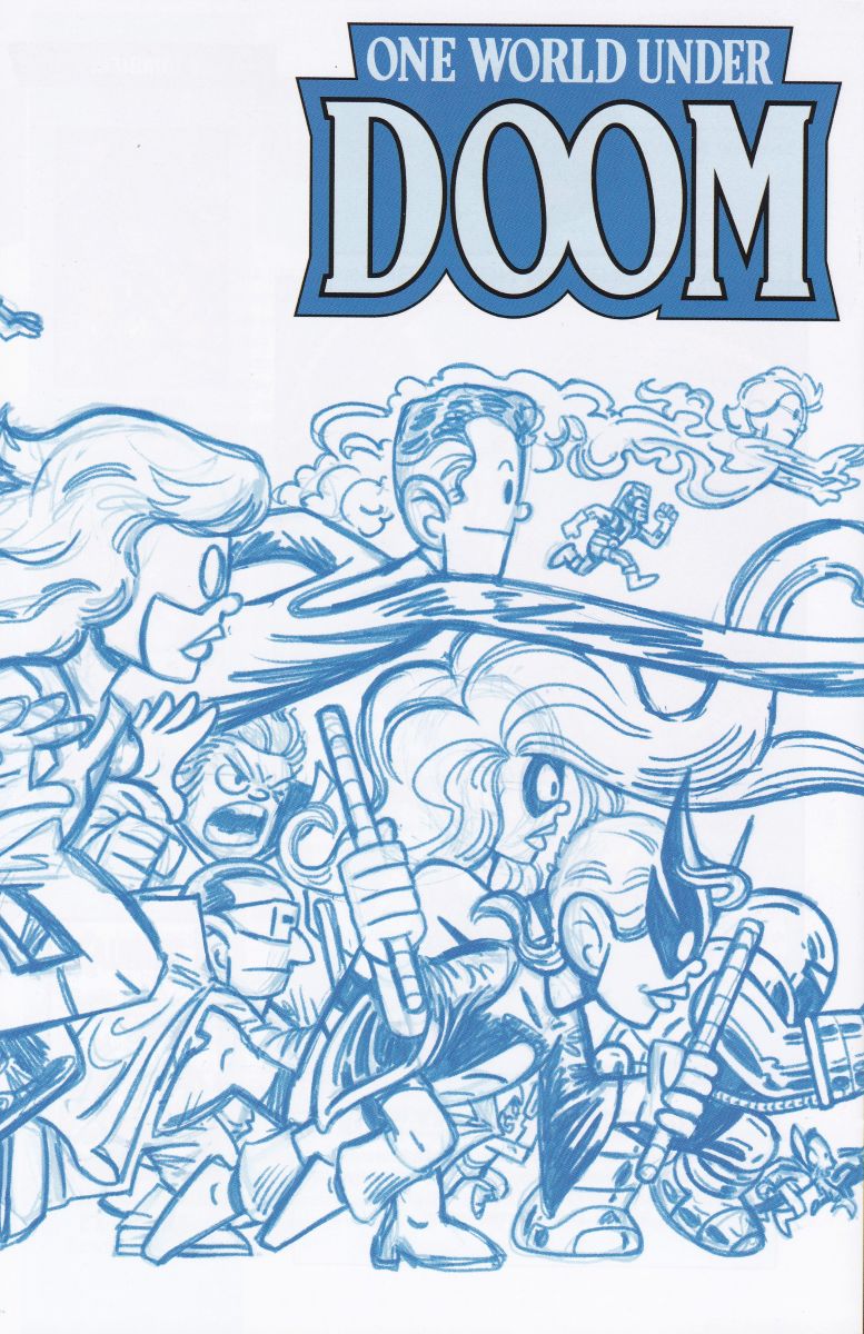 - En la contraportada se incluye la parte derecha de una cubierta alternativa de One World Under Doom vol.1 #3 de Chris Giarrusso.