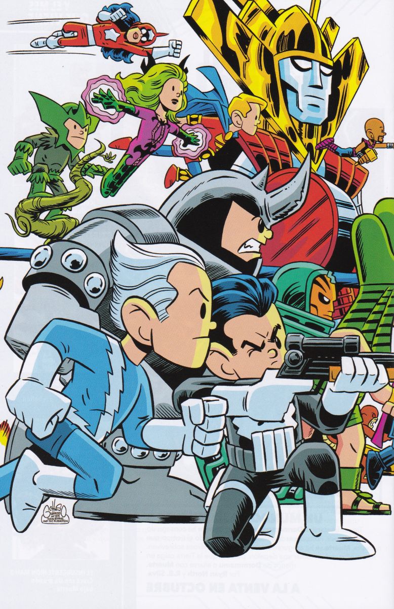 - En la tercera página de cubiertas se incluyen la portada a tres cuartos de página y un comentario del próximo número de la serie, así como un avance de algunas de las series relacionadas con el Universo Marvel que se publicarán el próximo mes.