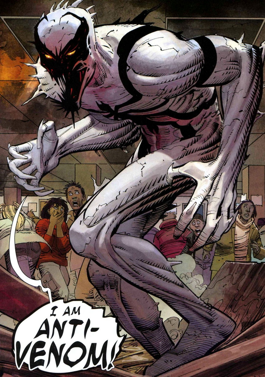 Tras perder el simbionte original, Eddie fue infectado por el suero experimental de Mister Negativo, lo que alteró sus células y generó un nuevo simbionte blanco: Anti-Veneno. Con esta identidad, adquirió habilidades únicas como la capacidad de purgar toxinas, enfermedades y otros simbiontes de los cuerpos de sus víctimas, convirtiéndose en una figura más heroica y redentora.