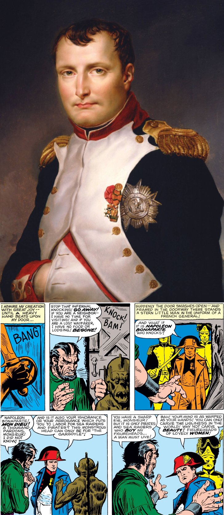 Como pèrsonaje del Universo Marvel, encargó a un tallista que creara una mujer de madera como figura decorativa para su barco, pero se negó a hacerlo, pues odiaba a las mujeres que despreciaban su fealdad. Napoleón amenazó con matarlo si no accedía, y así lo hizo, sorprendiéndose de la belleza de su creación. Todos estos años de soledad lo habían amargado, pero se dio cuenta de que sí deseaba el amor de una mujer. Se sorprendió cuando ella le habló y le declaró su amor, pero le dijo que solo podía hacerlo una vez a la semana, al dar la medianoche. Entretuvo a Napoleón para pasar más tiempo con ella y visitó a una gitana con la idea de transformarse en madera para que las dos figuras decorativas pudieran adornar el barco de Napoleón juntas para siempre. Engañó a la gitana para que no le pagara, y cuando la poción funcionó y lo transformó en madera, la mujer de madera se transformó en humana. Entre lágrimas, le informó que la gitana estuvo allí antes para vengarse. Se marchó, pero con la esperanza de que la gitana algún día revierta el hechizo.