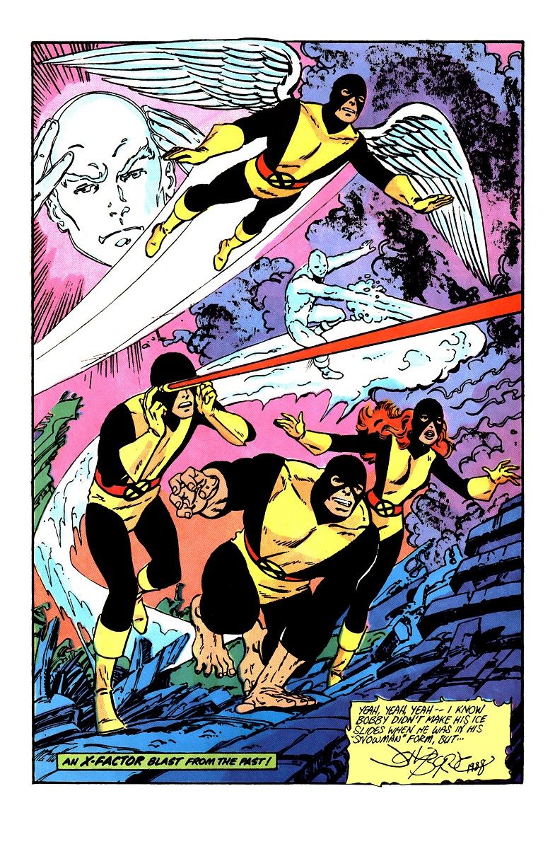 La Nave decide crear hologramas tridimensionales de las fotografías para que los niños puedan verlas mejor. El primero es de La Patrulla-X original, luego se centran en la graduación de La Bestia del equipo, su transformación en La Bestia peluda y cómo el padre de Artie, Carl Maddicks, revirtió la condición. Con su inteligencia menguando cada vez que usa su fuerza, La Bestia se enfada al recordar lo inteligente que solía ser y deja que los niños se queden con sus pensamientos. Los niños, en cambio, siguen mirando las fotografías, maravillándose de cuánto han cambiado los miembros de Factor-X a lo largo de los años: cómo el Hombre de Hielo comenzó con una forma nívea y finalmente sus poderes se sobrealimentaron y usa un cinturón especial para mantenerlos estables; la transformación de Warren Worthington III, de Ángel volador, a la amputación de sus alas y su transformación en Muerte, el cuarto Jinete de Apocalipsis, antes de finalmente recuperar su libertad. Hablar de Cíclope y Chica Maravillosa los lleva a hablar de su extraña relación; el liderazgo de Cíclope en La Patrulla-X original y la nueva; el altibajo de Fénix; y la difícil relación de Scott con Madelyne Pryor, que ni siquiera un niño podría estabilizar. También ven cómo Factor-X ha cambiado desde su formación, haciéndose pasar por cazadores de mutantes hasta que se descubrió que eran mutantes, y cómo, gracias a que salvaron Nueva York de ser destruida por Apocalipsis, se convirtieron en héroes.
