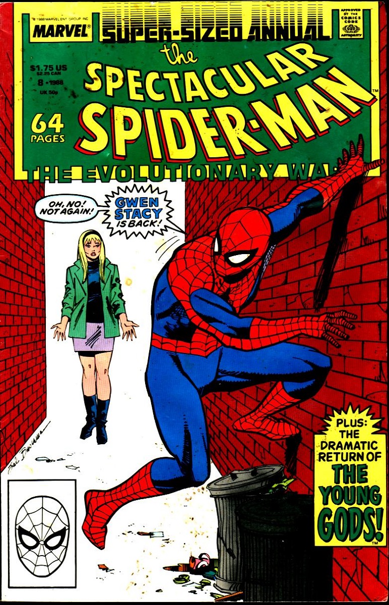 Mientras tanto, a bordo de un enorme submarino en medio del océano, el Purificador, conocido como el Profesor Quint, informa al Alto Evolucionador de que no lograron capturar al Clon de Gwen Stacy. Cuando Quint pregunta por qué es tan importante, el Evolucionador explica que es una rareza genética que necesita más investigación. Los secretos que contiene su cuerpo son parte importante de sus planes para purificar a la raza humana y prepararla para alcanzar el siguiente nivel de evolución. Con eso, el Alto Evolucionador se transforma en energía pura y abandona la nave. De vuelta en el apartamento de Peter Parker y Mary Jane, Spiderman rebusca en sus cajones buscando un álbum de fotos. Lucha con la mezcla de emociones que siente tras ver a la mujer que se parecía a Gwen Stacy. Justo entonces, Mary Jane regresa a casa de compras. Empieza a contarle sus planes, pero se da cuenta de que su marido está pensando en otra cosa. Es entonces cuando le revela que Gwen Stacy ha vuelto. En ese momento, el Alto Evolucionador ha llegado a la enorme nave de los Celestiales en el espacio profundo. Viene en busca de los Jóvenes Dioses, quienes han estado perfeccionando sus poderes bajo el cuidado de los Celestiales tras ser transformados en superhumanos por los numerosos panteones de la Tierra, para demostrarles a los Celestiales que la humanidad es una especie viable. El Alto Evolucionador sube a la nave donde presencia a Junipur y Katos entrenando a los Jóvenes Dioses en el uso de sus poderes.