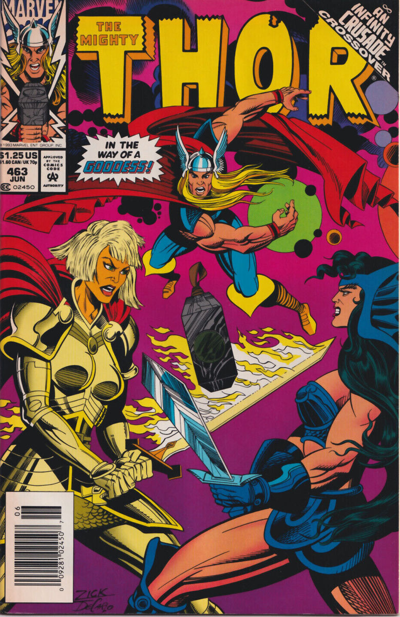 Thor y la Valquiria (Constructo) Oscura se detienen en un planeta para descansar, pero son recibidos por la Diosa (Ella). Ella y la Valquiria Oscura luchan por Thor, y la Diosa percibe la verdadera naturaleza de la Valquiria Oscura. Thor decide seguir a la Diosa, y la Valquiria Oscura desaparece. En Asgard, Sif supone que Thor había sucumbido a la Locura del Guerrero, pero no ha querido decírselo a Odín porque el castigo sería el destierro eterno. Así que usan las Piedras Norn para buscar a otro campeón: Eric Masterson.