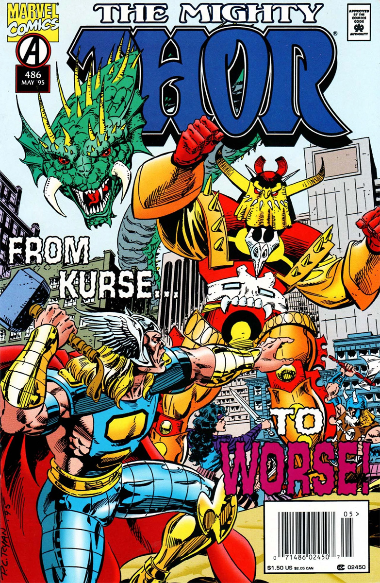 - Jon Babcock no figura como rotulista en los créditos, pero se indica en la sección de correo los lectores de The Mighty Thor Vol.1 #489 que rotuló las páginas 14-22 de esta historia.
