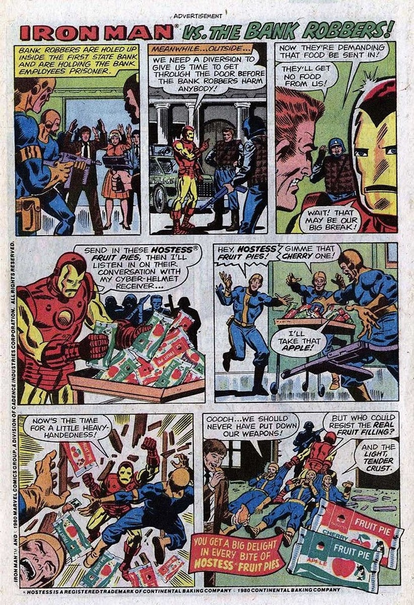 - Entre los distintos contenidos publicitarios se incluye "Iron Man Vs. the Bank Robbers!", con la particularidad de que es un cómic protagonizado por Iron Man, promocionando unos pastelitos, realizado por autores desconocidos (1 página).